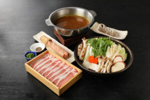 お肉:鹿児島産黒豚・自家製鶏ミンチ、野菜:白菜・水菜・京ネギ・えのき・しめじ・豆腐・人参・エリンギ・さつま芋・ちくわ、その他:お蕎麦