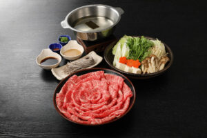 お肉:熊野牛、野菜:白菜・水菜・京ネギ・えのき・しめじ・豆腐・人参、その他:お蕎麦